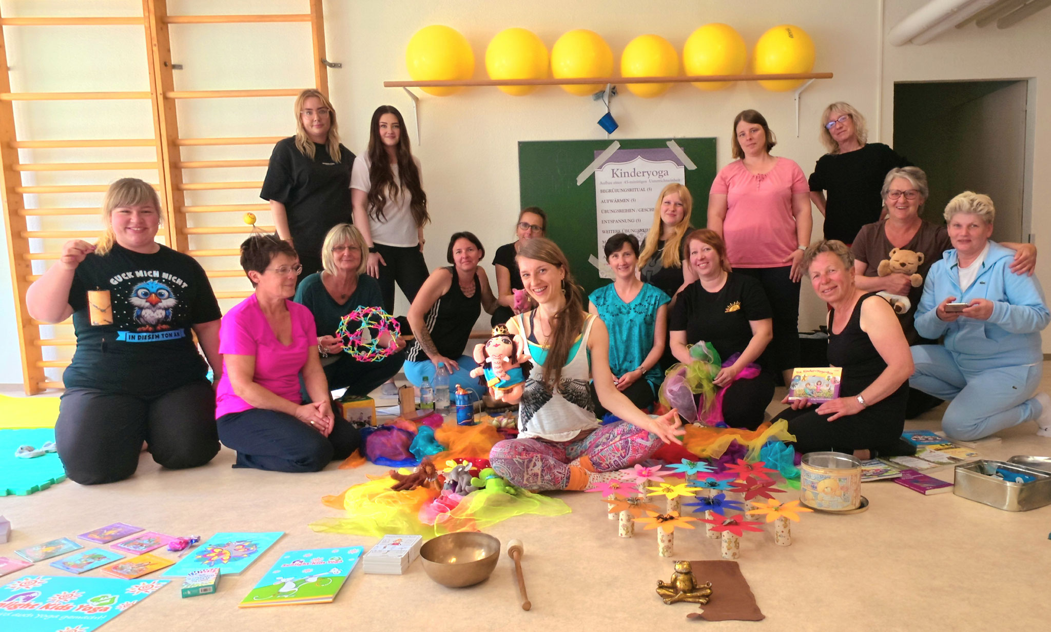In der onlinegestützten Ausbildung kann ich mein Wissen über Kinderyoga viel vertiefender vermitteln als in einer Tagesfortbildung, in der die Aufnahmekapazität Sättigung der Kolleg*innen sehr schnell erreicht ist und das große Spektrum des Kinderyogas nur oberflächlich eingeführt werden kann.