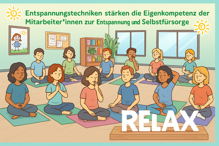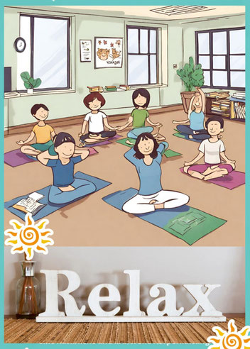 Option 2 "Relax Entspannungsrechtniken": Teamtag live vor Ort bei Ihnen: "RELAX" - Yoga und Entspannungstechniken kennenlernen, Achtsamkeit & Selbstführsorge - entweder als Teamtag nur für Erwachsene oder zusätzlich mit der Schulung für Entspannungstechniken für Kinder